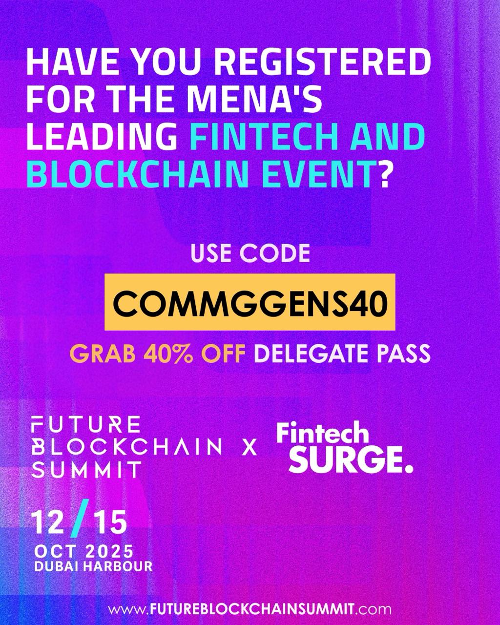 MENA’s premier fintech gathering returns — bigger, sharper, and more connected. Fintech Surge unites with the Future Blockchain Summit to accelerate digital finance in the Middle East.