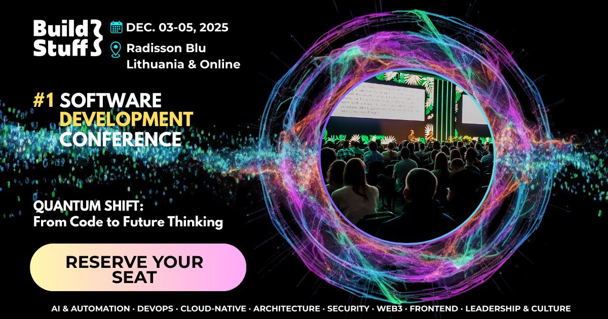 Build Stuff 2025 embraces the “Quantum Shift” — exploring how developers, architects, and leaders can expand problem-solving beyond logic and into innovation. This year’s focus connects technology, leadership, and the human mind to reimagine how we build the future of AI, automation, and modern software architecture.